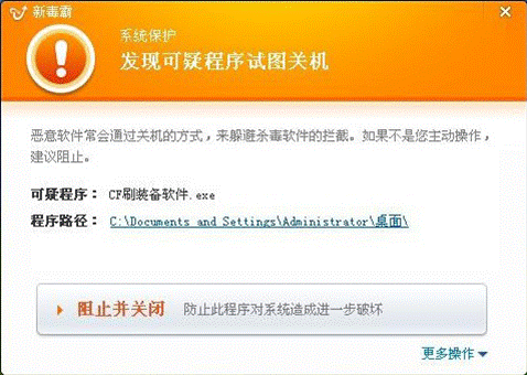 圖7.金山毒霸攔截病毒強制關機