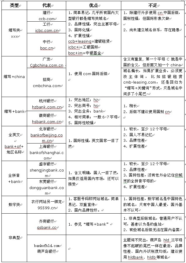 先別下結論,先舉例來總結下目前銀行域名的類型和優缺點: