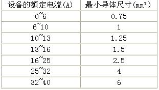 表3:?jiǎn)涡倦娫窜浘€導(dǎo)體截面積與載流量對(duì)應(yīng)的關(guān)系