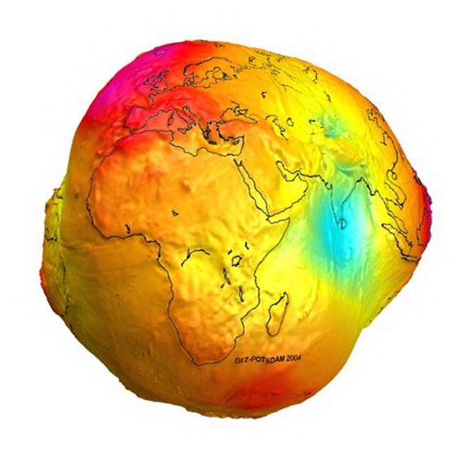 真相:這張圖來源于歐洲空間局,實(shí)際上表示的是全球重力的空間差異,而且是夸張了的,目的是讓研究結(jié)果更直觀。在你的想象中,仍然可以認(rèn)為地球是兩極略扁、赤道微突的橢球體。