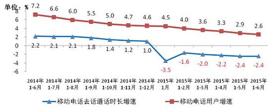 圖5 2014-2015年6月移動電話通話量和移動電話用戶同比增長比較