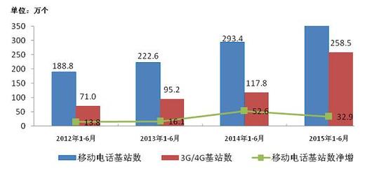 圖11 2012-2015年1-6月移動電話基站數發展情況