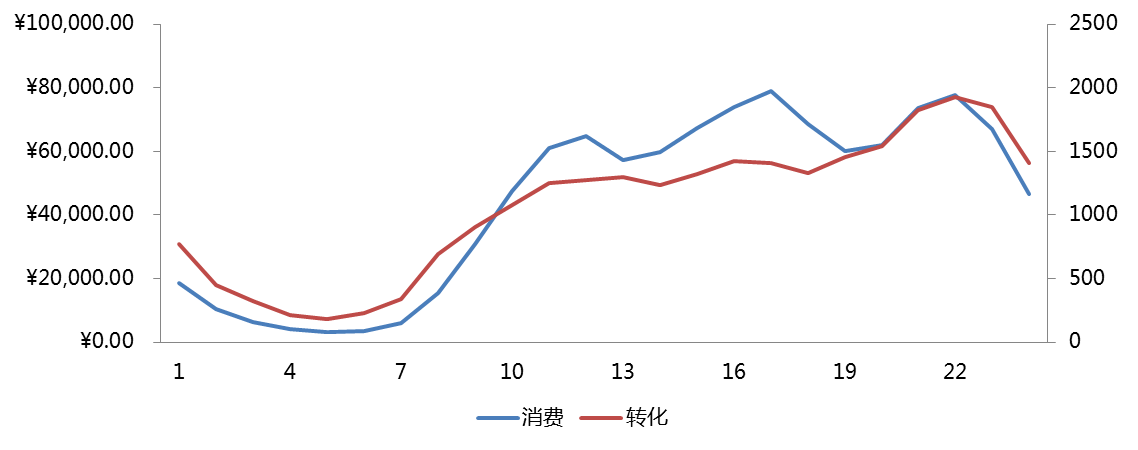 很多客戶朋友在剛剛開始接觸推廣的時候,對于推廣時間的限定是比較死的,例如:推廣時間等于上班時間、推廣時間沒有經過數據分析而拍腦袋決定、推廣時間隨著心情高興沒有規律性;筆者在接觸過的推廣客戶中,有以上幾種情況的新客戶占比非常大。對于推廣時間這個概念,很多客戶都認為僅僅是什么時候花錢,什么時候不花錢的概念。但是,在一個大數據盛行的時代,這樣的設置策略未免過于草率,這樣不僅可能造成流量小的情況,更有可能會對效果產生重大的影響。對于推廣時間的設置,我們需要從兩位維度對推廣時段的效果進行分析,首先是消費,其次是轉化量。
