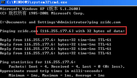 3、怎樣測試DNS記錄是否建立成功呢?我們在“開始→運行”,輸入“cmd”,點擊確定,即可打開一個DOS窗口,輸入“enkj.com”,如果有如下圖的響應,則說明已成功建立好了DNS記錄!