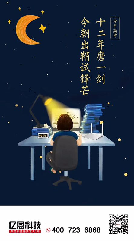 今天是6.7號(hào),又到了一年一度的高考時(shí)間。高考是無(wú)數(shù)學(xué)子寒窗苦讀十二年奮斗的目標(biāo),是無(wú)數(shù)貧困學(xué)生改變命運(yùn)的一搏,也是為自己這么多的年的努力交一份答卷。高考之后,你將告別自己的青蔥歲月,踏入人生的另一條道路,這條道路是坎坷還是平坦大道,決定權(quán)就在此一役。億恩科技的小編在此為大家助力,希望大家都考到好的成績(jī),踏入自己理想的校園。
