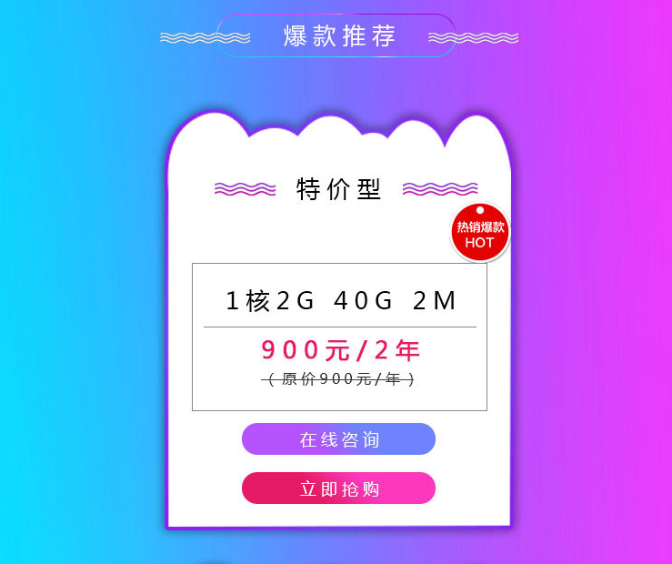 特價型:2核2G 60G 3M