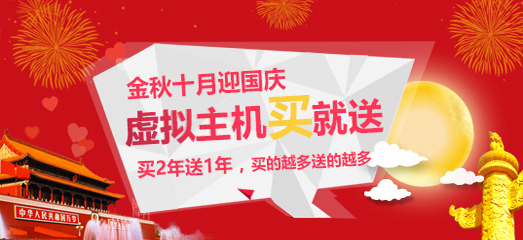 導語:金秋十月迎國慶,億恩科技為了回饋新老客戶,推出了虛擬主機的大特惠,虛擬主機買就送,買2年送1年,買的越多送的越多,名額有限 等你來搶!